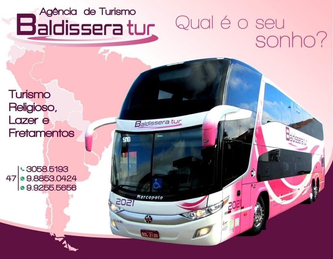 A Baldissera Turismo está no mercado desde 2014 buscando oferecer aos clientes uma experiência única em viagens. Os pacotes operados pela empresa são voltados para grupos diversos, sendo tanto no Brasil como viagem ao exterior. Todos destinos que comerciamos é altamente estudado antes de ser lançado para o mercado. Uma grande preocupação é que a viagem seja memorável, para que isso ocorra, não medimos esforços para fazer parcerias e incluir nos pacotes o que tem de melhor para o viajante. Ou seja, os roteiros operados pela empresa costumam ser completos, para que não fique aquela impressão de que não aproveitou o destino como deveria. Atendemos clientes de todo o Brasil, nossa sede está na cidade de Mafra – Santa Catarina e as portas estão abertas para receber clientes e juntos tomarmos um café e conversar sobre aquilo que mais gostamos de fazer, viajar, pois " VIAJAR RENOVA A ALMA". Todas as viagens oferecemos guias para auxiliar os passageiros naquilo que for necessário, motoristas treinados. Por isso, é uma satisfação adaptarmos o roteiro, montando uma viagem exclusiva para que fique de acordo com as necessidades de cada pessoa. Sabemos que cada viajante tem uma preferência, por isso, é muito importante que esse roteiro seja personalizado. O que nos inspira e nos motiva a abrir todos os dias a agência e montar viagens personalizadas, é a satisfação dos nossos clientes no retorno de um sonho em formato de viagem. Fazer parte dessa realização é algo inexplicável e nos dá a força necessária para sempre buscar exceder a expectativas do nosso maior ativo: VOCÊ!